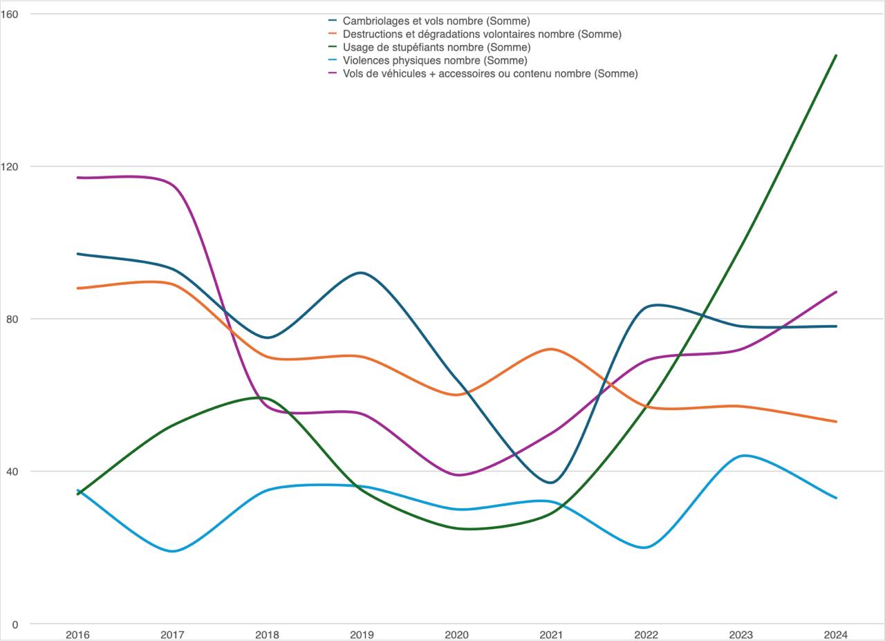 Les données du Ministère de l’Intérieur prouvent que l’installation de caméras n’a pas de résultat notable pour notre ville (Cf. graphique ci-dessus).