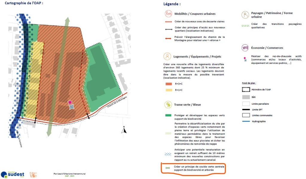 Sur la partie haute de l’OAP du chemin de la Montagne, est prévu un parc en lieu et place des bâtiments industriels actuels.
